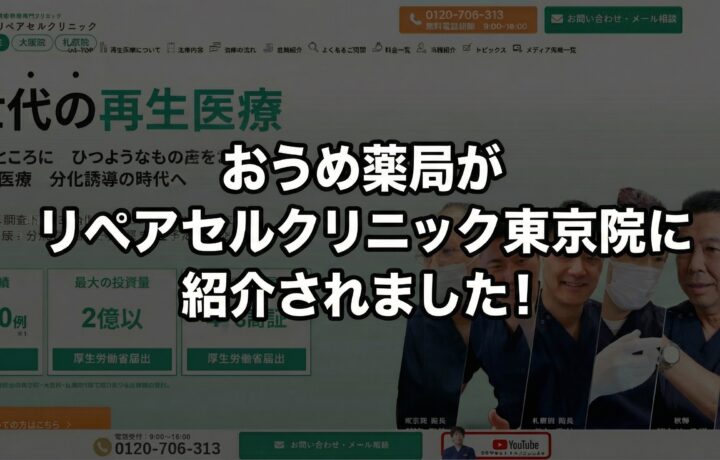 おうめ薬局のサイトがリペアセルクリニック東京院の以下のサイトで紹介されました。