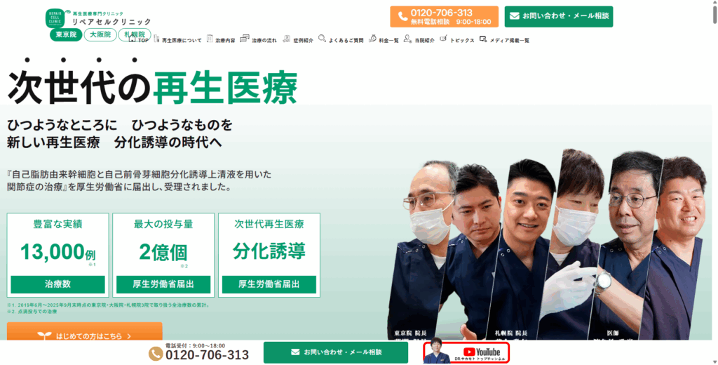 リペアセルクリニック東京院は、再生医療技術を用いて、患者さま一人ひとりに合わせた治療を提供するクリニックです。